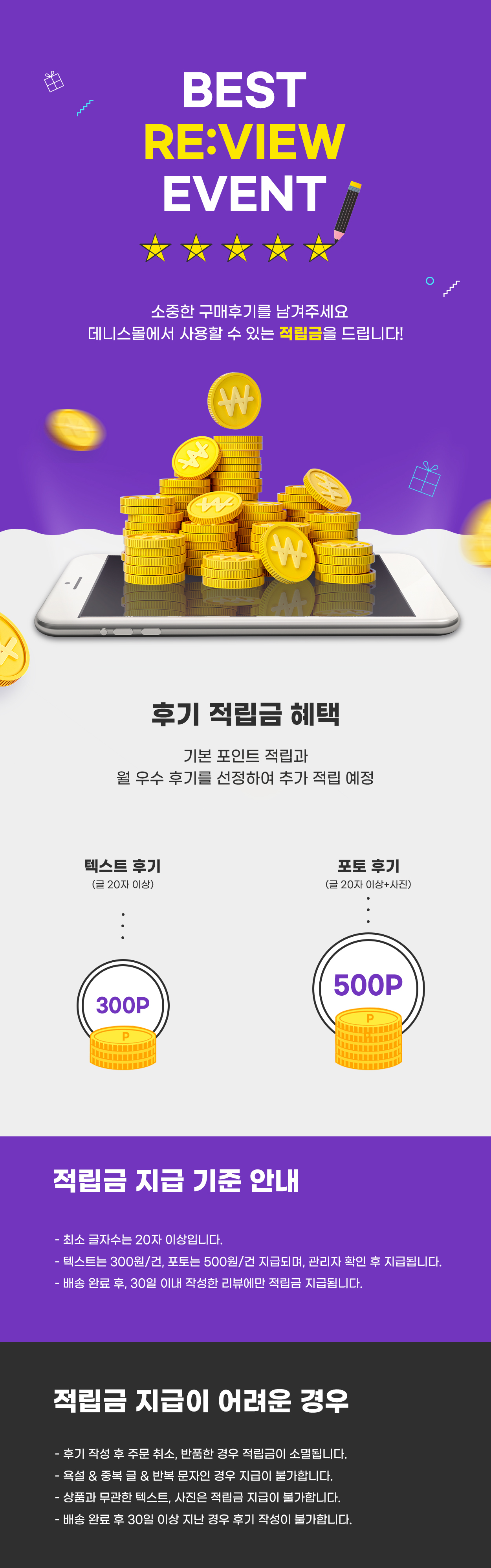 제목: 리뷰쓰고 적립금 혜택 받자!